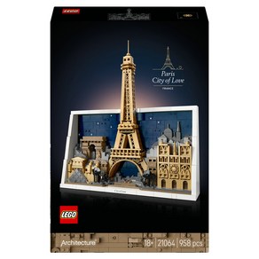 레고 아키텍처 21064 파리 사랑의 도시는 에펠탑과 개선문 등 파리의 대표 건축물을 레고 브릭으로 재현한 세트로, 조립을 통해 도시의 랜드마크를 세밀하게 표현하며 인테리어 장식이나 컬렉션용으로 활용할 수 있다.