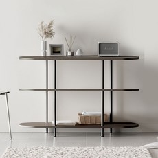 라운드 형태의 디자인과 블랙 컬러로 세련된 분위기를 연출하며 3단 선반 구조로 다양한 소품을 깔끔하게 정리하고 진열할 수 있어 공간 활용도가 높은 실용적인 수납 선반