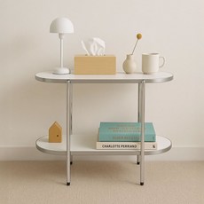 라운드 형태의 크롬 프레임 디자인으로 세련된 인테리어 연출이 가능하며 미니 사이즈로 공간 활용도가 높고 2단 선반 구조로 간단한 수납과 진열을 동시에 할 수 있으며 가벼운 무게로 이동이 편리하고 협탁이나 사이드테이블로 다양하게 활용하기 좋은 실용적인 제품