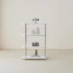 타원형 디자인으로 부드럽고 감각적인 분위기를 연출하며 4단 선반 구조로 다양한 물품을 효율적으로 수납할 수 있고 화이트 컬러로 깔끔한 인테리어와 잘 어울리는 실용적인 수납 선반