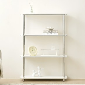 사각형 구조의 깔끔한 디자인과 화이트 컬러로 밝은 분위기를 연출하며 4단 선반 구성으로 다양한 물품을 효율적으로 정리하고 수납하기 좋은 실용적인 선반