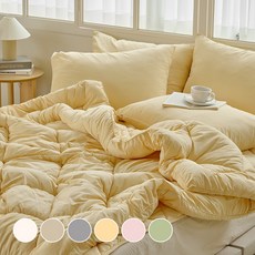 몽글몽글한 마이크로 워싱 처리와 모달 소재를 사용해 부드러운 촉감과 포근한 사용감을 제공하는 국내산 차렵이불