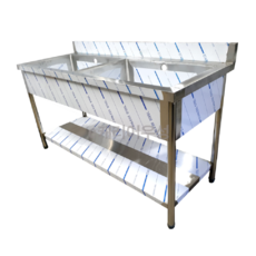 스테인리스 소재로 위생적이며 2조 구조로 분리 세척이 가능하고, 배수구가 추가된 1200mm 사이즈 업소용 싱크대.