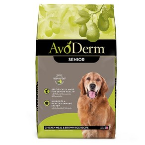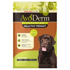 AvoDerm Adult Healthy Weight Dry Dog Food 성견의 체중 관리를 위해 지방 함량을 낮추고 L-카르니틴과 균형 잡힌 영양을 더해 활동량이 적거나 체중 관리가 필요한 강아지에게 적합하도록 설계된 건식 사료로 아보카도 유래 영양과 오메가 지방산이 피부와 피모 건강 유지에도 도움을 준다