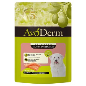 AvoDerm Grain Free Salmon & Vegetables Recipe Dry Dog Food 연어를 주원료로 사용한 그레인프리 레시피로 단백질 공급을 돕고 아보카도와 오메가 지방산을 함유해 피부와 피모 건강을 고려해 설계된 전연령 강아지용 건식 사료